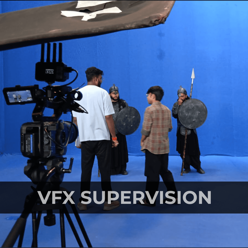 VFX Supervision ensures that every shot is captured correctly for visual effects by guiding the shoot on set managing green screens, lighting references, tracking markers, and all technical details needed for smooth VFX in post-production.